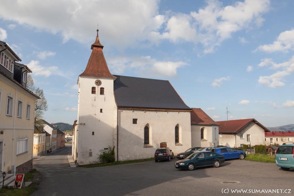 Gotický kostel někdejšího horního městečka na severním úbočí Šumavy. Dostupné prameny udávají vznik současné stavby v 15. století, nelze vyloučit starší původ. Upraven v 18. století.
