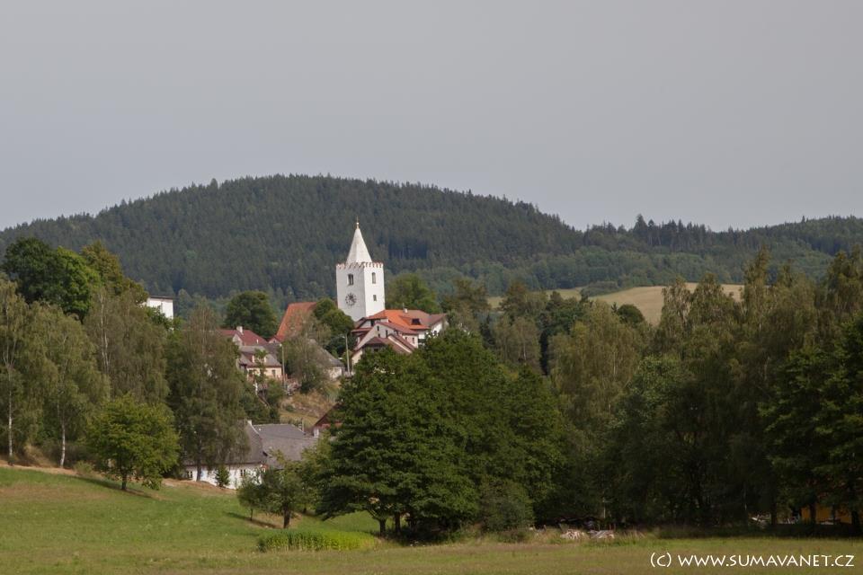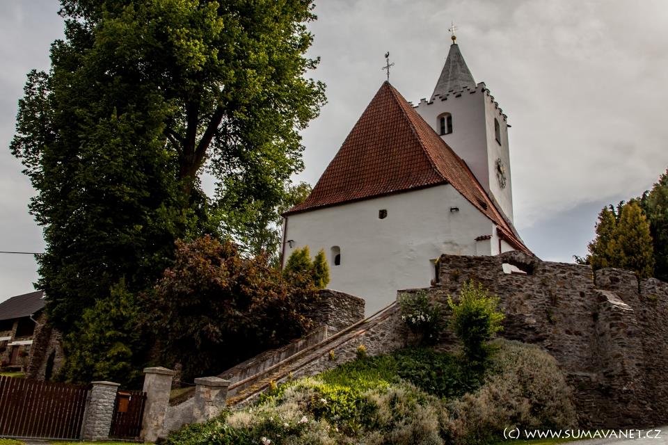 Kostel byl upravován patrně ve 14. století, v 19. století bylo obnoveno cimbuří věže. Vznikl úpravami hradní kaple. Věž zdobí trojstupňové cimbuří, z něhož vystupuje vrchol věže ve tvaru osmibokého jehlanu.