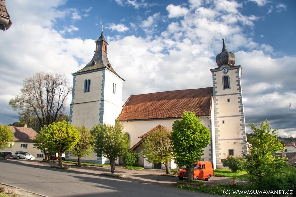 Původně románský kostel, počátkem 14. stol. rozšířený goticky, upravovaný renesančně a barokně.